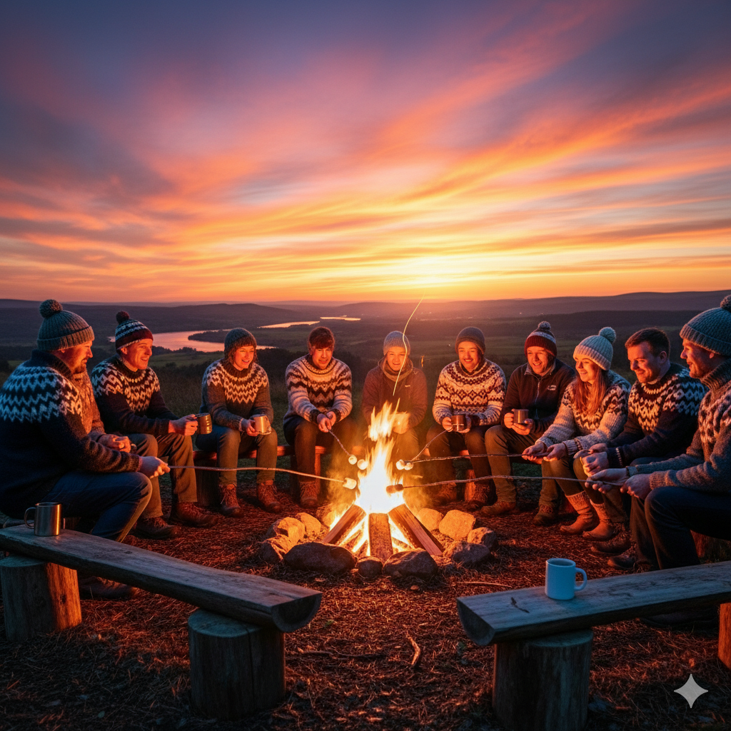 Camp fire at Sunset